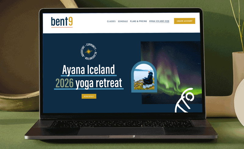 Custom landing pages have been developed for Bent9 destination retreats over the past two years, with the most recent, Ayana Iceland 2026, featuring a fully branded and animated experience.