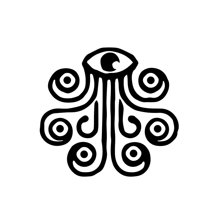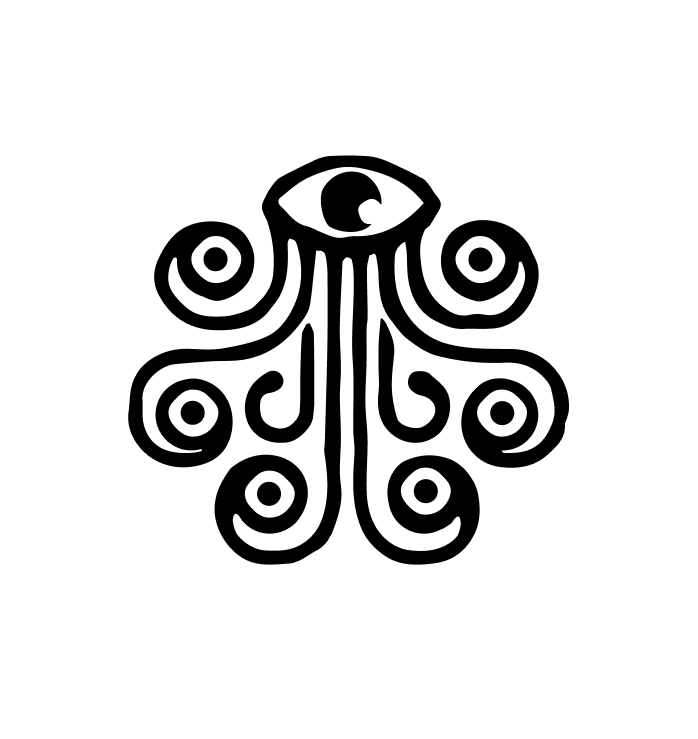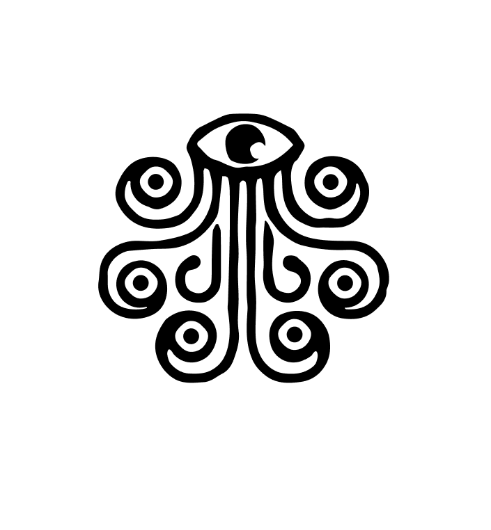 The Sea of Monsters logo is compact and versatile (no need for alternate arrangements), consisting of a unique eye-and-tentacle symbol and arched word mark. Together, they nod to the crude tattoos of old sailors and mythical cartography artwork. The whole vibe is dark, mysterious, and craft beer cool.